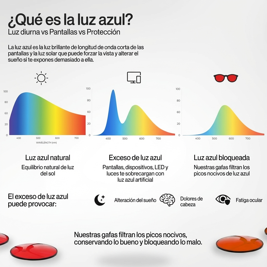 Imagina una noche cualquiera. Estás sentado en el sofá, con el móvil en la mano, la televisión de fondo y quizá el ordenador para consultar algo rápidamente. Crees que solo estás relajándote. Pero cada segundo tus ojos están expuestos a la luz azul, una luz perfecta para el día, pero catastrófica por la noche.